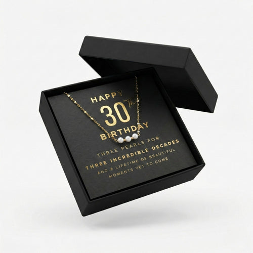 30th Birthday Pearl Necklace Gift Box with Card - Gift for Her - Gold Plated Stainless Steel Chain
