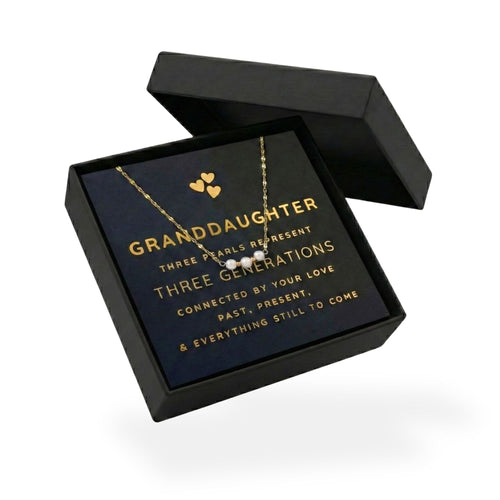 For Granddaughter - Gold Three Generations Necklace with Card and Gift Box, 3 Freshwater Pearls with Gold Plated Chain